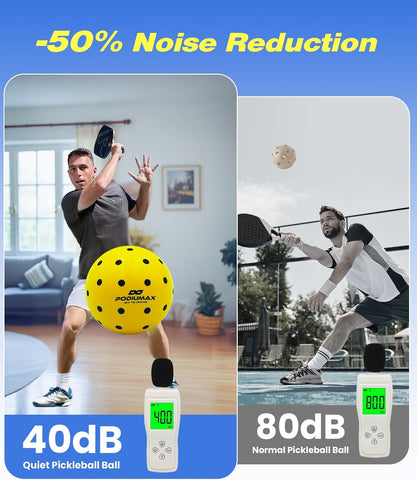 - 50% Less Noise, Quiet Indoor Play: Our premium PU indoor pickleballs are designed for a quieter game, reducing noise by 50% compared to traditional pickleball balls. Perfect for apartment and HOA communities with noise ordinances. Our silent pickleball balls indoor keep sound under 55 dB, ensuring a more comfortable and sustainable workout. You can enjoy extended play sessions 30% longer, without disturbing neighbours or fellow players