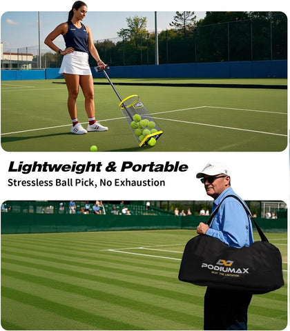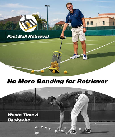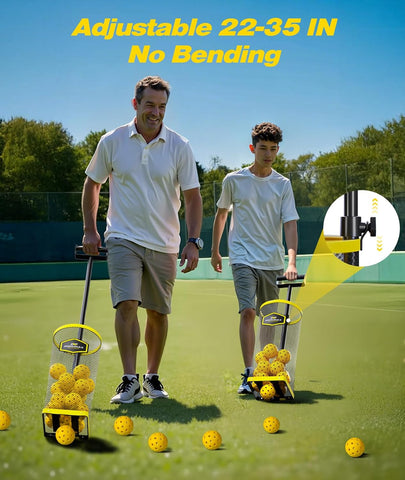 - No more bending, Save Back & Knees: Say goodbye to back and knee pain. The upgraded tennis ball picker features a 22–35" adjustable handle for easy, joint-friendly ball pickup. Great for all ages, adults and youth can find their ideal height. Perfect for pickleball and tennis. A must-have for families and frequent players