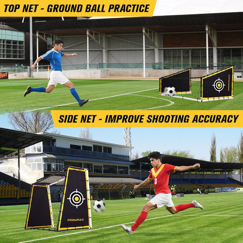 • Ground Pass Net & Soccer Goal Target for Practice Shooting Accuracy: This top net-ground bounce net allows for individual low passing accuracy drills while accommodating multiple players for rebound passing practice. This soccer training equipment meets diverse training needs. The side net-target net enhances shooting precision, fulfilling daily accuracy training requirements