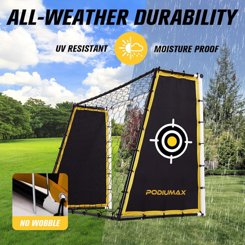 PodiuMax 4 in 1 Soccer Goal & Rebounder, 7x5ft Rebound Net with Upgrade Frame, Steel Ground Pass Net for Backyard Park Field, Soccer Kick Back Trainer for High Passing, Low Passing & Shooting Training