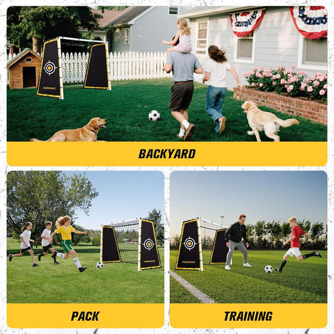• Family Fun and Youth Training: This soccer rebounder net is perfect for backyards, parks, training fields, and sports activities. Whether it's youth skill training to build a solid soccer foundation or family fun for quality time together,it is suitable for both indoor and outdoor use. Four-in-one soccer equipment functionality: soccer goal, rebound net, ground net, and shooting target net