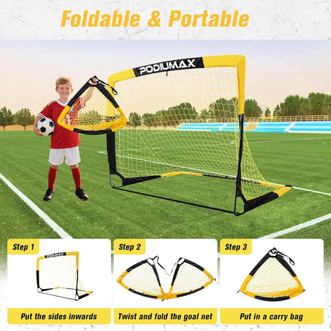 - Kid-Friendly Setup, Foldable & Portable: This soccer goals for backyard unfolds in just 3 seconds, and no tools are needed. Kids can set it up alone easily. The kids soccer net is lightweight yet tough enough to withstand every kick, featuring frame and a carry bag included. It's easier to bring to the backyard, park, beach, garden, field, school playground, from sunny afternoons outside to rainy-day indoor play. Kids can enjoy soccer fun anytime, anywhere
