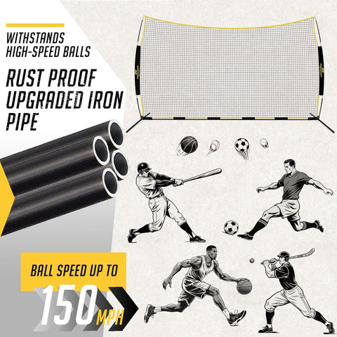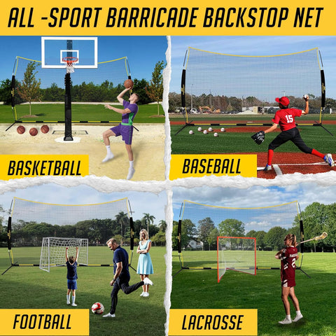 - 16×10 FT All-Ball Sport Backstop Net: Whether for lacrosse, baseball, softball, basketball or soccer training, the steel reinforced frame ensures the net stays secure, providing a wide hitting area or protective space. This barrier net with 2 sandbags and 4 ground stakes for versatile use indoors, outdoors, and on various surfaces. The baseball/soccer/lacrosse/basketball backstop has become a popular training tool for both athletes and family sports enthusiasts