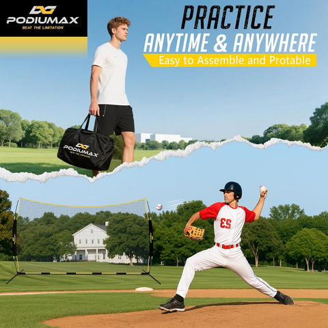 - Portable & Easy to Assemble: Comes with a carrying bag and detailed assembly instructions—no tools required. This heavy-duty protective netting serves as both a safety barrier and hitting training equipment, suitable for soccer fields, baseball diamonds, backyards, or any outdoor setting. Whether you're looking for backyard protection or highly reliable training gear for competitions, this portable baseball/soccer/lacrosse/basketball training net system is the perfect gift