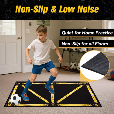 • Indoor & Outdoor Use, No Weather Limits: Bad weather often stops outdoor training. This soccer skills mat works indoors and outdoors, rain or shine, with no missed sessions. Compared to going to the field, kids train more often, improve faster, and build soccer agility skills more consistently, making it a practical soccer training equipment