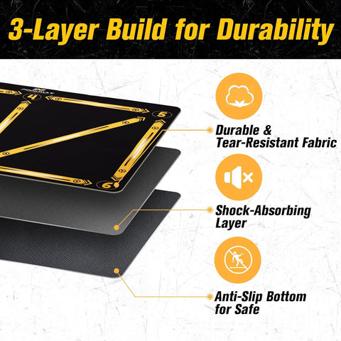 • Non-Slip, Keeps Training Safe and Stable: Made from durable, non-slip material, the soccer practice mat stays in place while dribbling, safer than practising on the floor. The thickened 1in shock-absorbing layer minimizes noise ensures quiet training, won't disturb family and neighbours. The training mat is easily rolled up and stored in the included carry bag, ensuring convenient storage and portability for daily soccer practice.