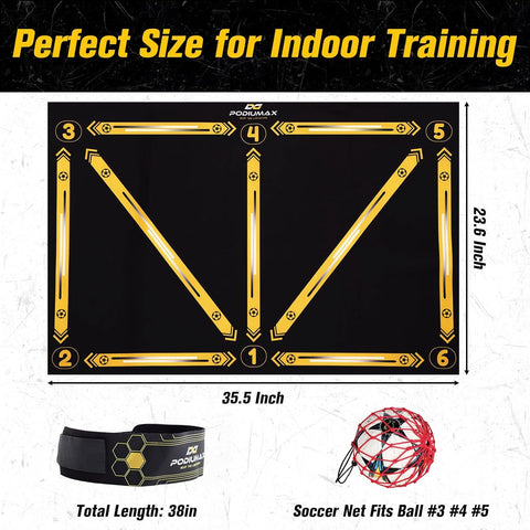 PodiuMax Soccer Training Mat, Football Training Mat with 1 Kick Back Trainer for Kids, Non-Slip Silent for Dribbling, Footwork, Agility, Soccer Training Equipment Indoor Outdoor